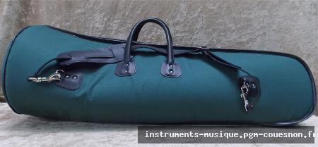 Luxuary bag for Tenor Trombone - with thick stuffing - leather handle and shoulder belt with handle - colours: Black, Dark Green, Dark Red