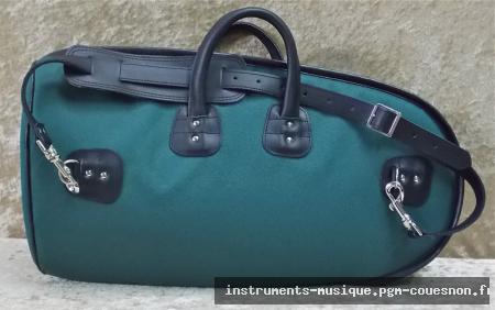 Luxuary bag for Flugelhorn- with thick stuffing - leather handle and shoulder belt with handle - colours: Black, Dark Green, Dark Red