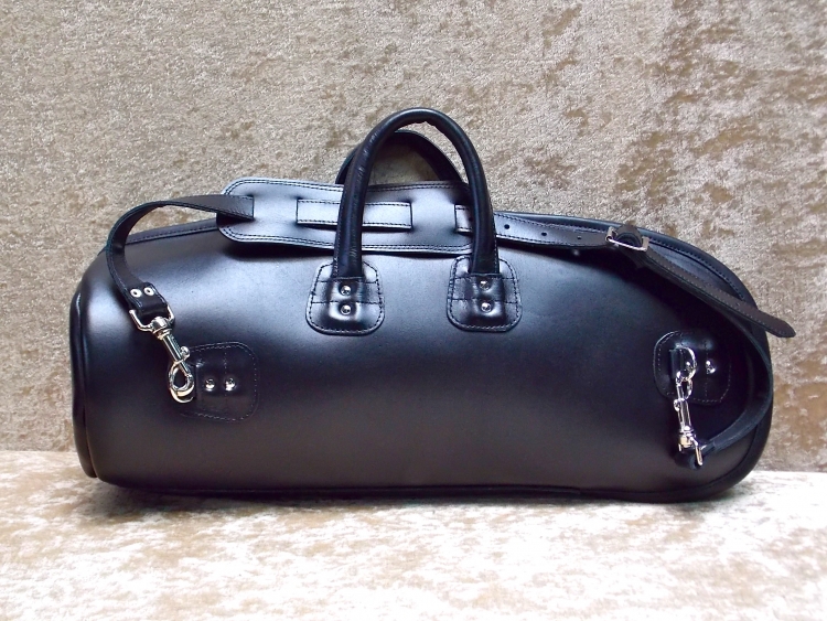 Housse de luxe tout cuir noir pour clairon anti-choc hyper rembourrée, anse et bandoulière cuir