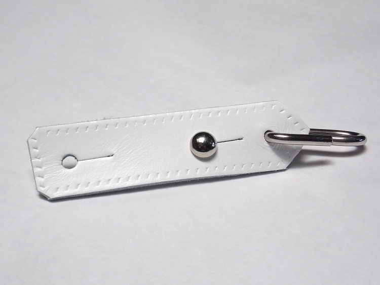 Patte de tambour en cuir avec crochet inox et bouton ( existe en cuir blanc, cuir noir ou cuir fauve )