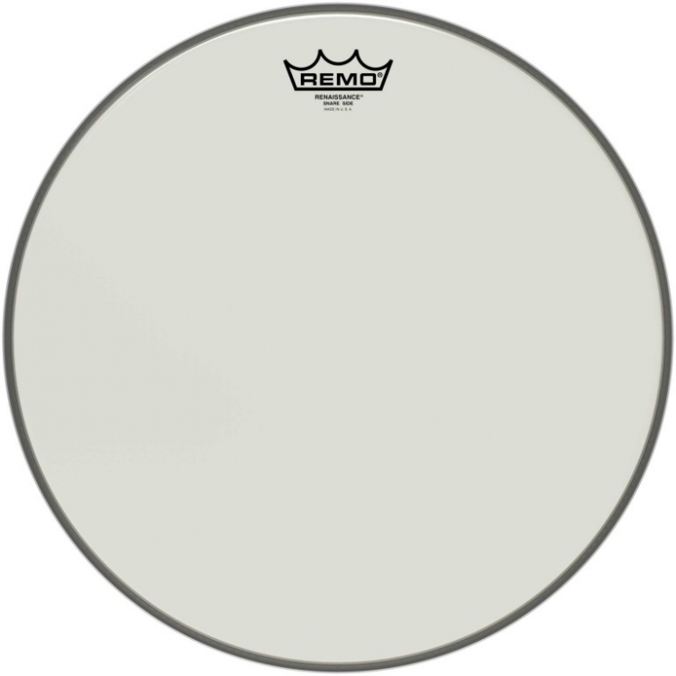 Peau de timbre remo Renaissance 4/4 15". La peau n'est pas transparente. Elle est translucide beige jaunâtre type peau de veau.