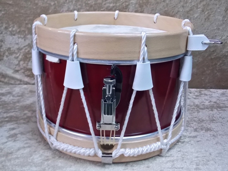 Rope tension drum 12" - 31x26 cm - 2 Kgs . colors: Black, white, red, royal blue, blue navy, ivory, light grey or foreign legion green - Lacquered wood hoops or blue paint hoops (13€ are added for blue paint) - Black, white or brown leather tighteners - White or hemp color poypropylene rope / White polyamid halyard or hemp rope