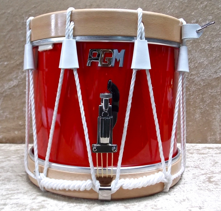 Rope tension drum 12" - 31x31 cm - 2,4 Kgs . colors: Black, white, red, royal blue, blue navy, ivory, light grey or foreign legion green - Lacquered wood hoops or blue paint hoops (13€ are added for blue paint) - Black, white or brown leather tighteners - White or hemp color poypropylene rope / White polyamid halyard or hemp rope